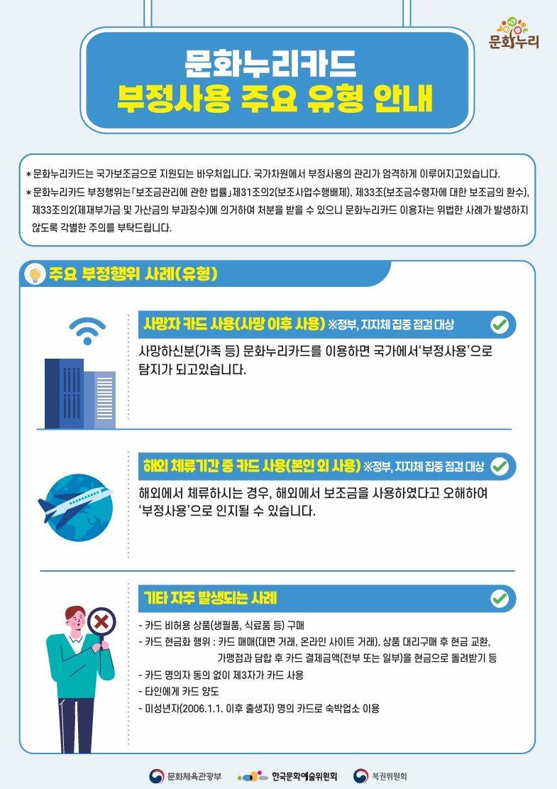 Home 카테고리 없음 문화누리카드 부정사용 주요 유형 안내 포스터 문화누리카드 부정사용 주요 유형 안내 포스터 박흥비 2024. 12. 24. 부정사용 주요 유형 안내 비허용 업종 및 품목 안내 일부 예외적인 상황 처분 및 제재조치 반응형 공유하기 게시글 관리 부자되세요! 댓글
