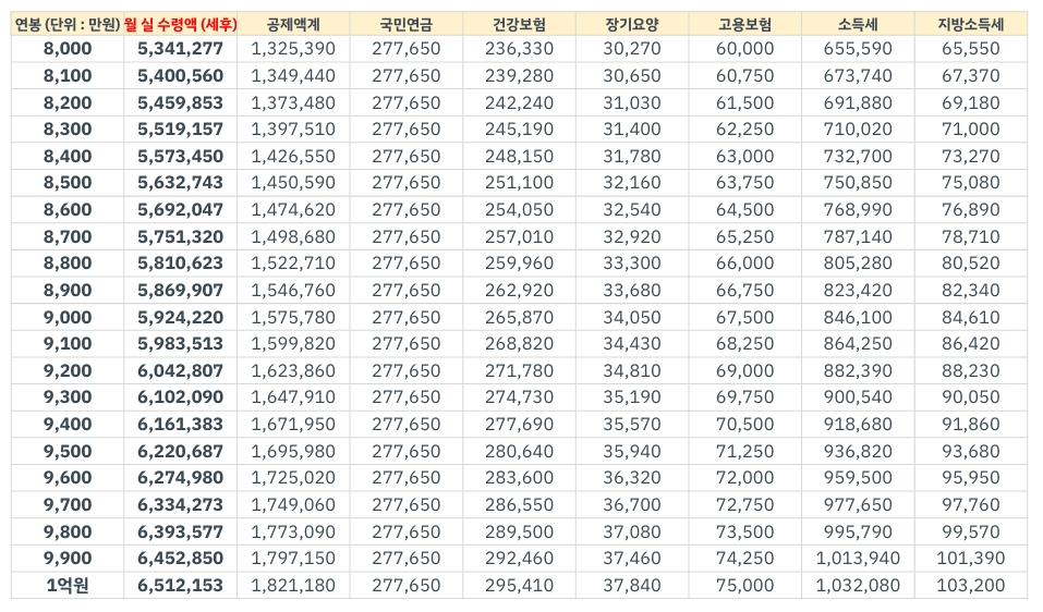 2025 연봉별 실 수령액 확인하기